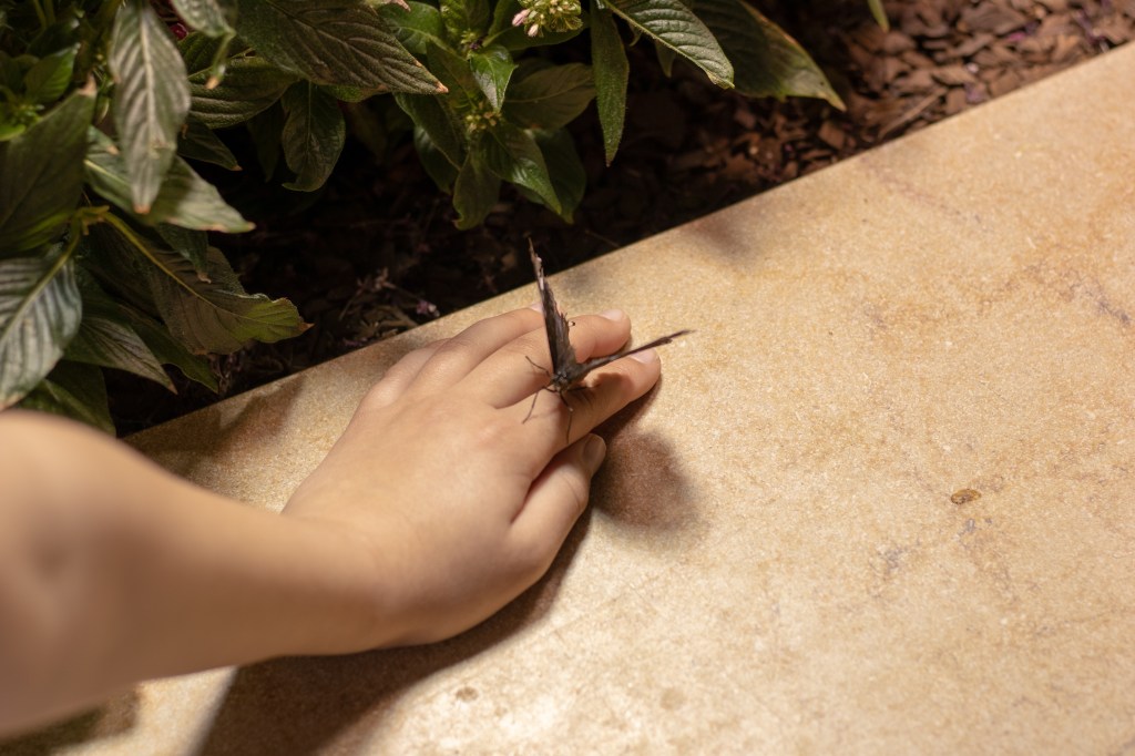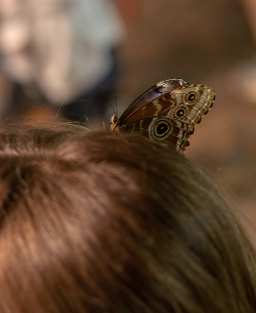 As we were walking out into the “butterfly check room” one landed on her head. She had the biggest smile on her face. The volunteer had to grab a net and escort the butterfly back into the garden area. Better luck next time old friend.