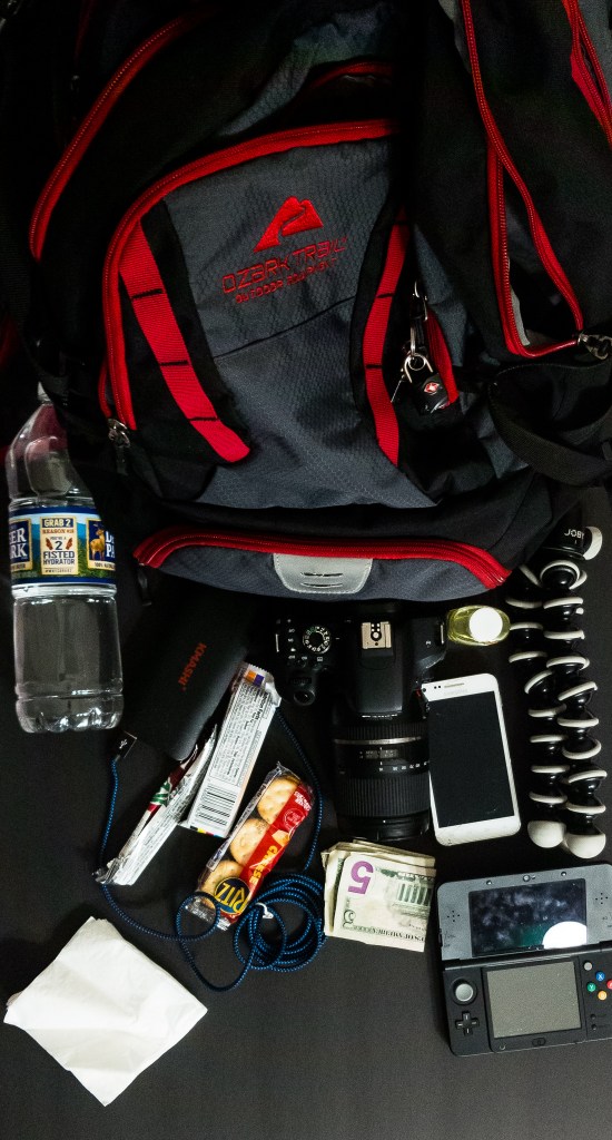 Backpack– This item is pretty much a must have. Without it you wouldn’t be able to carry the rest of the items. I highly recommend the Ozark backpack. I have had it for 4 years now and it’s been to the beach, mountains, Disney World and major cities (DC, Philly, NYC). It is still holding up strong.