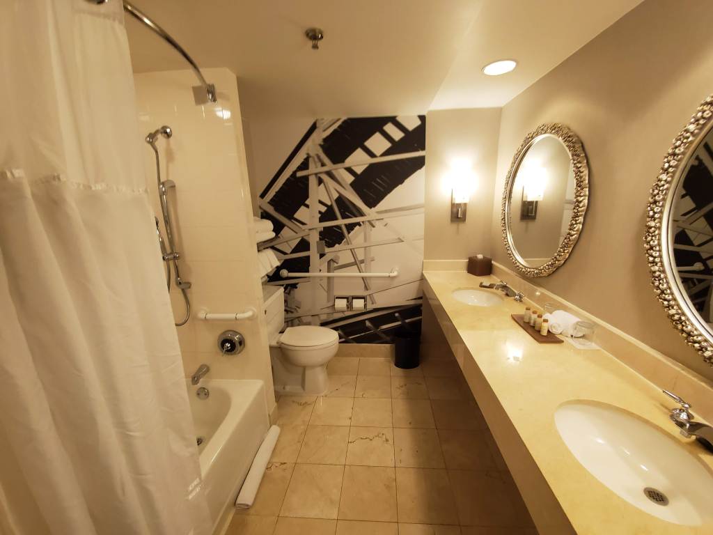 The bathroom is pretty big with plenty of room to move around and get ready in the mornings. The shower has great water pressure and water temperature is easy to control. My only complaint has to be with the flushing power of the toilet. It was really lacking but that could be because I was on the eighth floor.
