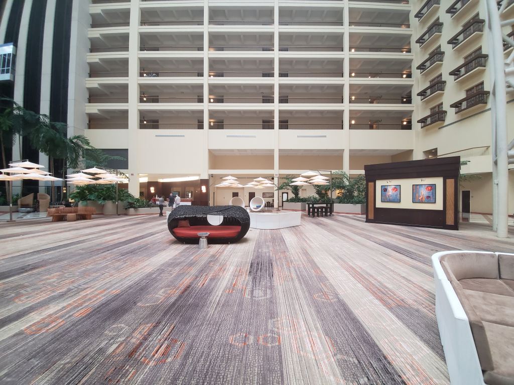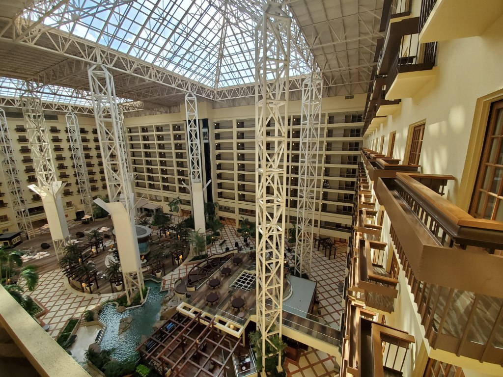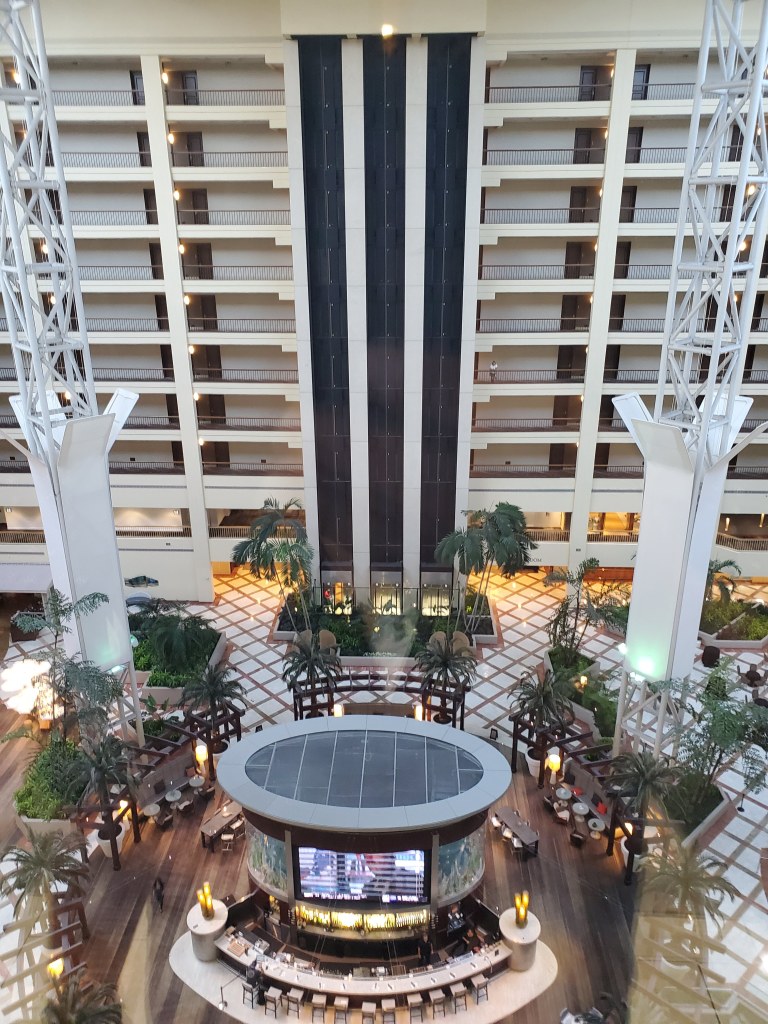 Once you walk into this hotel, it will take your breath away. Just walk in and look up. This 10 story high atrium is something else. Take a trip to the top floor on the elevator to get a really unique view. It really is something. On this stay I was on the eighth floor and just loved looking down and everything from that height.