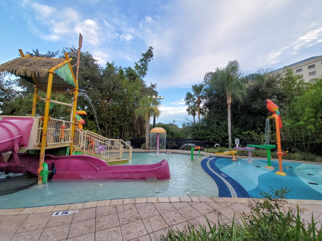 With all that talk of SeaWorld we now have to talk about the pool. The pool area is another amazing aspect at this hotel. Not only do they have a large outdoor pool. They also have a small water park (R Aqua Zone). You could spend the day lounging around the pool area while the kids play in the water park.