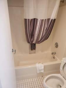 The bathroom again while small, handles its purpose perfectly. The water pressure in the shower is great. The temperature was also very pleasant and easy to adjust. The toilet had great flushing power.