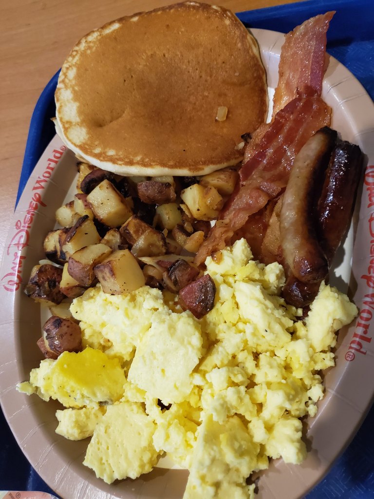For breakfast you can find eggs, bacon, potatoes, pancakes and waffles. In the bakery area you will find cinnamon rolls, croissants, cereal and fruit. Nothing at POP Century’s food court is a must have in my opinion. But the food is good.
