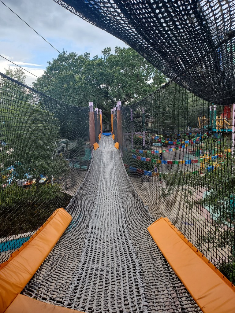 Sadly Sesame Place removed the nets a few years back. However, here at Busch Gardens Tampa the climbing area is bigger than it ever was in PA. Keep an eye on your kids because they will get lost wondering around.