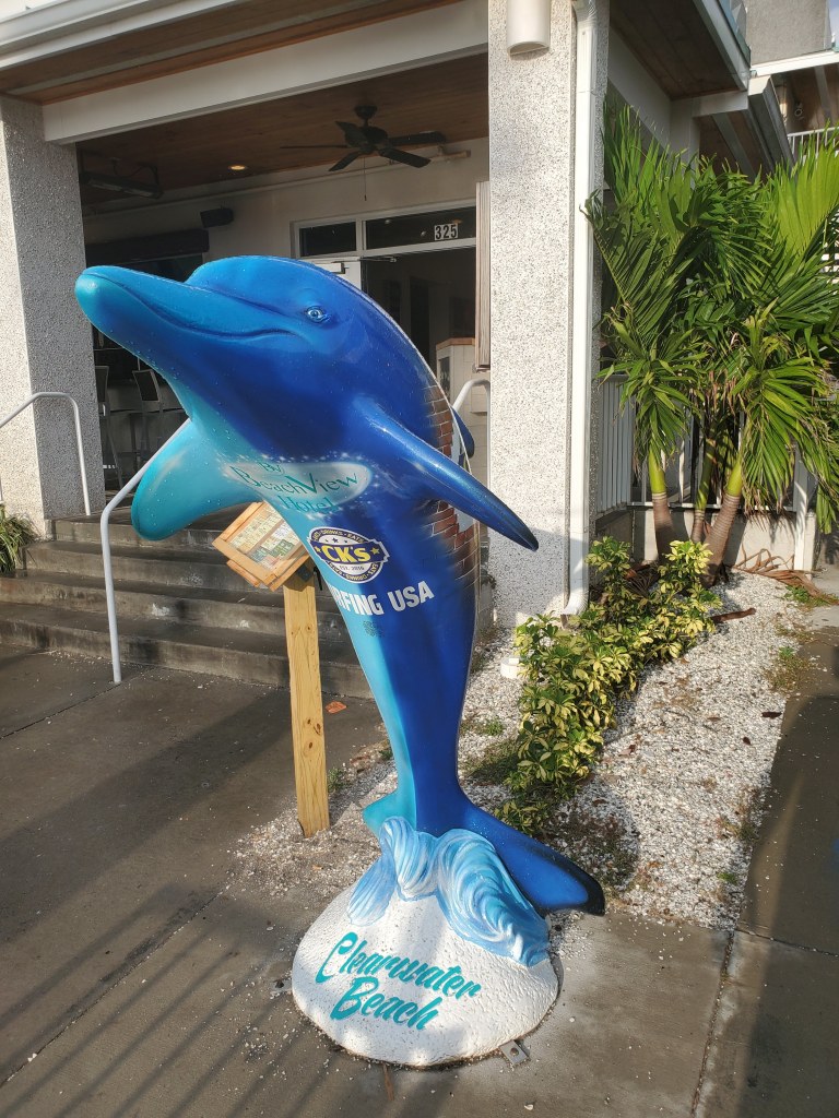 While driving or walking around Clearwater Beach or St. Petersburg you will find all of these painted dolphin statues. From what I have read, there are over 200 unique painted dolphins around.