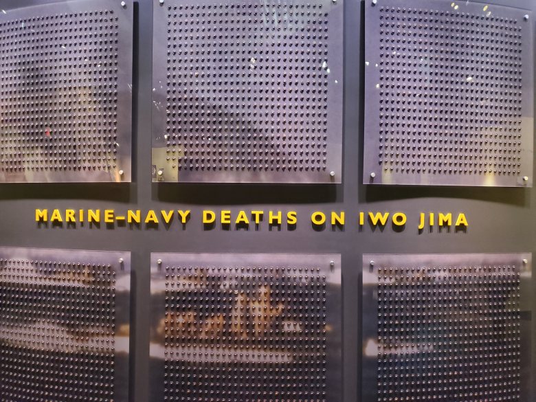 Make sure you take a look at the death total from Iwo Jima. Each Marine and Sailor’s death is represented by their insignia. You hear the number 5,931 but you can’t really picture it in your mind. This wall helps show you just the vast amount that number really is. Also remember that was just for a 36 day period and on ONE island.