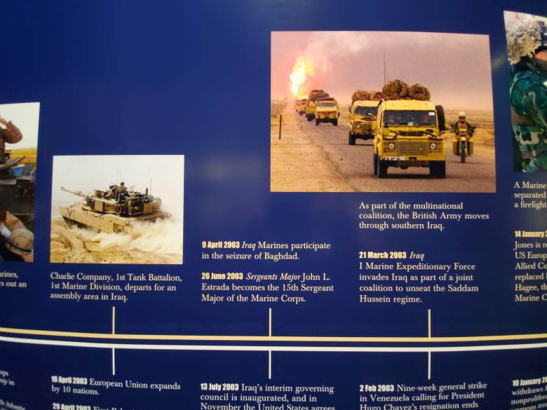 The Legacy Walk is one big timeline showing the history of the Marine Corps from that great day of 10 November 1775 up until today. Above the line is all of the events that happened in the Marine Corps History. Below the line are major events that happened National and Worldwide.