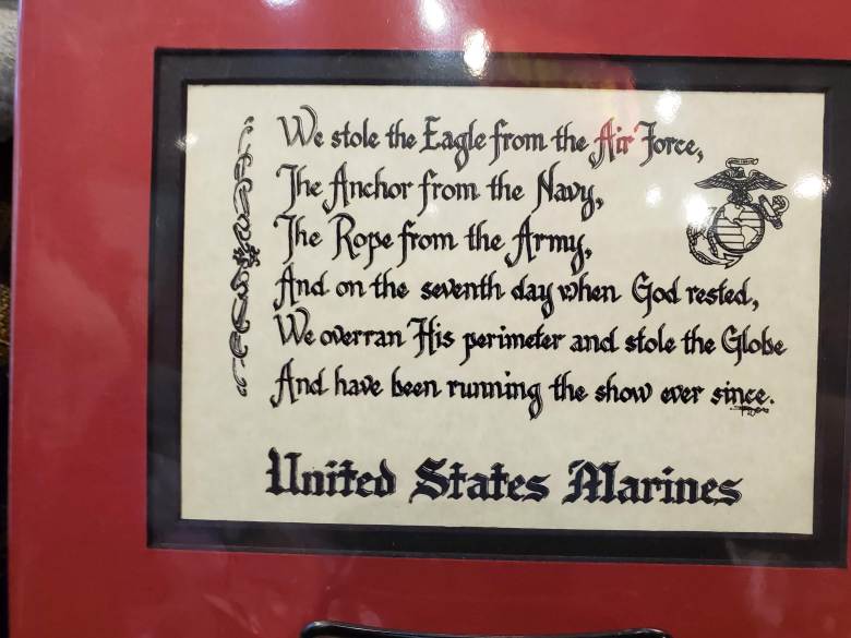 Being a United States Marine Corp vet myself (01-05), walking inside gave me goosebumps. Just knowing that their have been many Marines who have visited before me and many who will visit after me is amazing. Plus all of the other Veterans for the different branches and civilians can see why we are such bad asses.