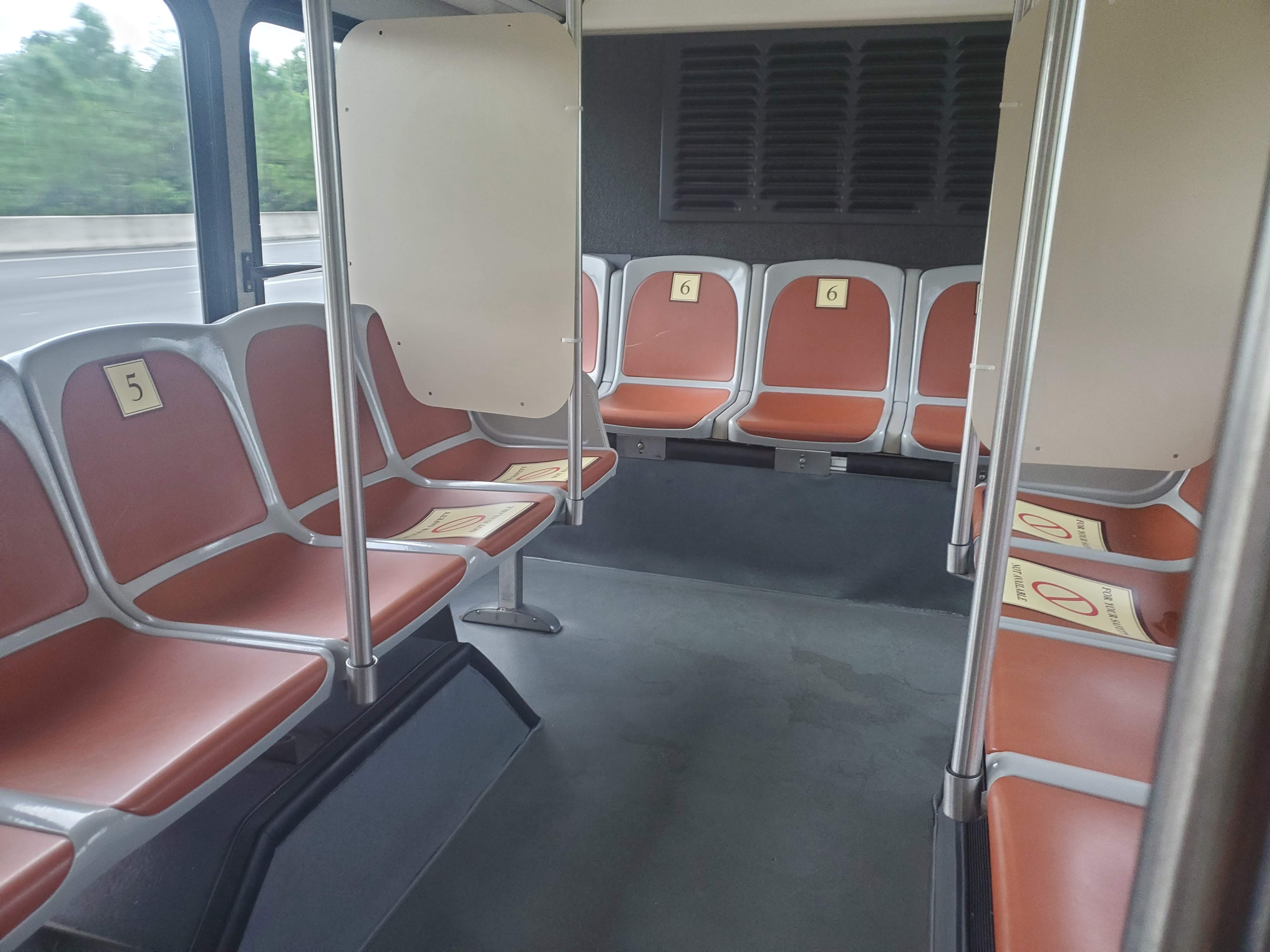 Due to the current environment and social distancing requirements the buses are only being loaded at what I can only guess is half capacity. They are broken down into 6 different sections of 5 seats each. Most groups are between 2 and 4 people so you can see how few people are on the buses.