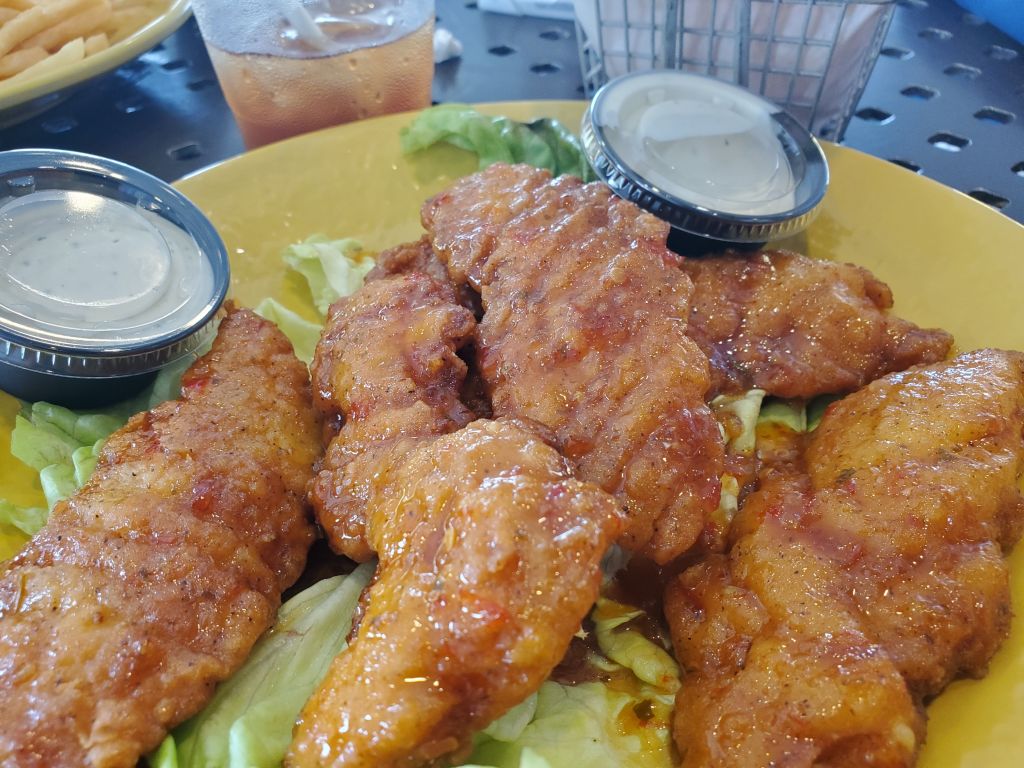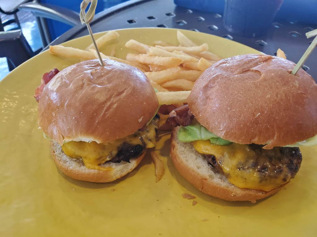 The boneless wings were delicious. They were crispy and had the right amount of sauce. The burger was good too. We got the sliders and they were cooked perfectly. The food was really good.