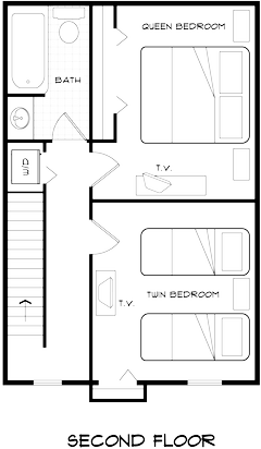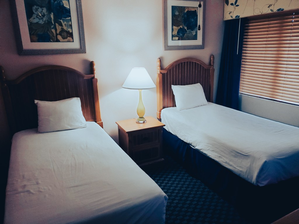 The two bedrooms upstairs are a nice size. One room has a queen bed. The other room has two twin beds. Now the beds are not the most comfortable around. But they are good enough for a decent night sleep.