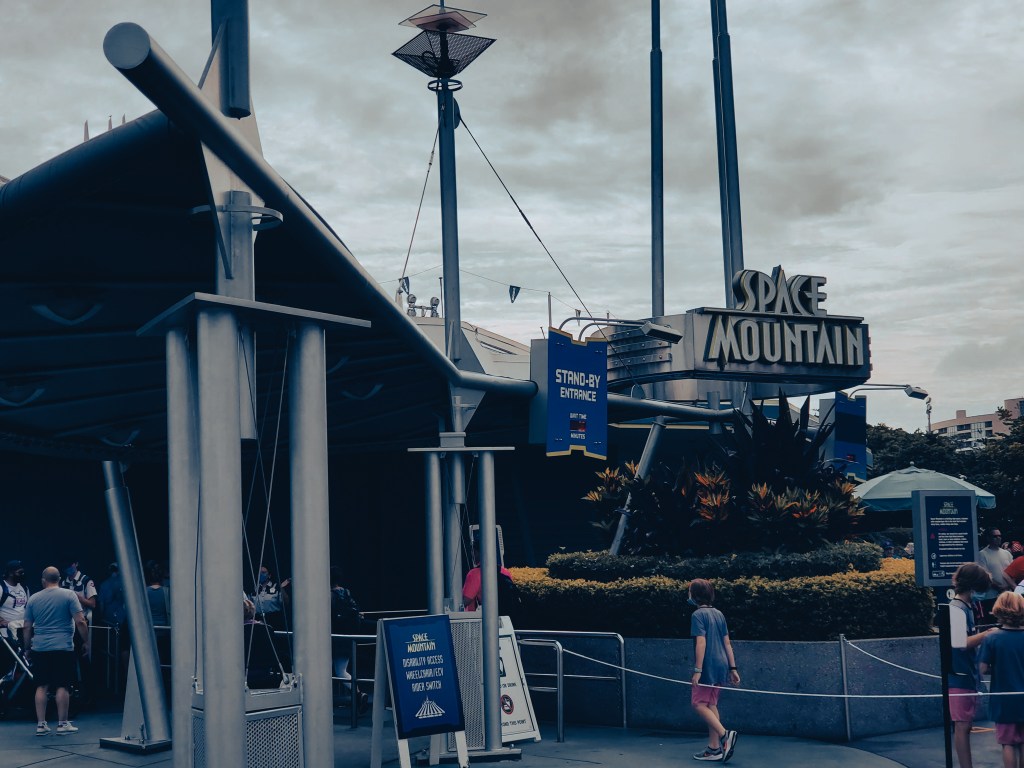 First ride of the day was Space Mountain. For the past couple of days I have been stalking the wait times on the Disney app. I knew that Space Mountain had some of the longer lines throughout the day. Since my daughter and I don’t like waiting in line it helps to know what the average wait times throughout the day will be.