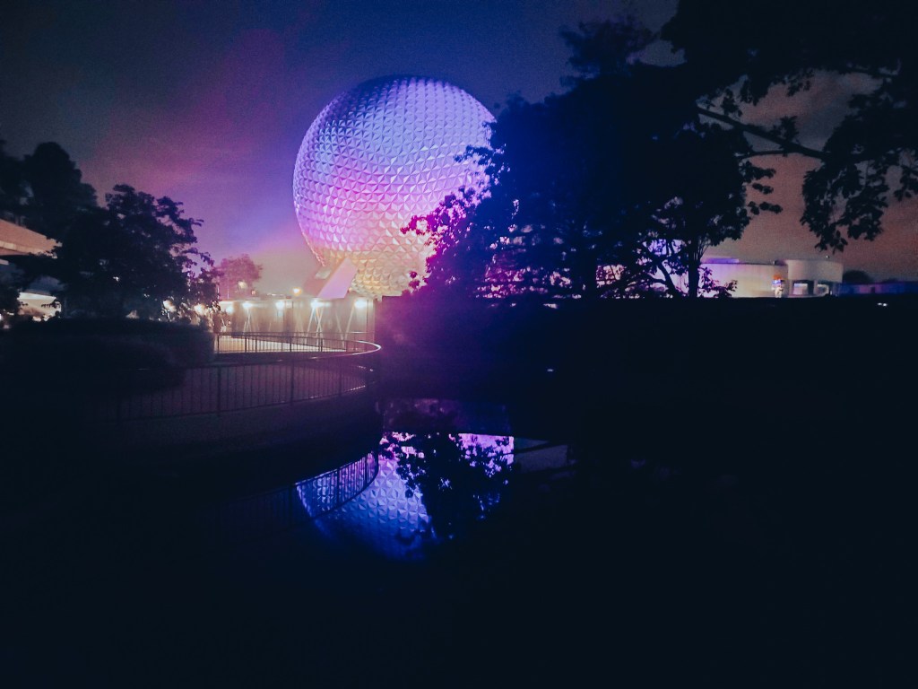 Once the fireworks ended we made the mad dash to the front of the park and to the car. Us and thousands of other people. Of course, I had to stop on the way out and get a couple pictures. I wasn’t able to get a photo of the EPCOT icon last year at night. I wanted to make sure I got it this year. Plus we wouldn’t be coming back tomorrow night so it was now or never.