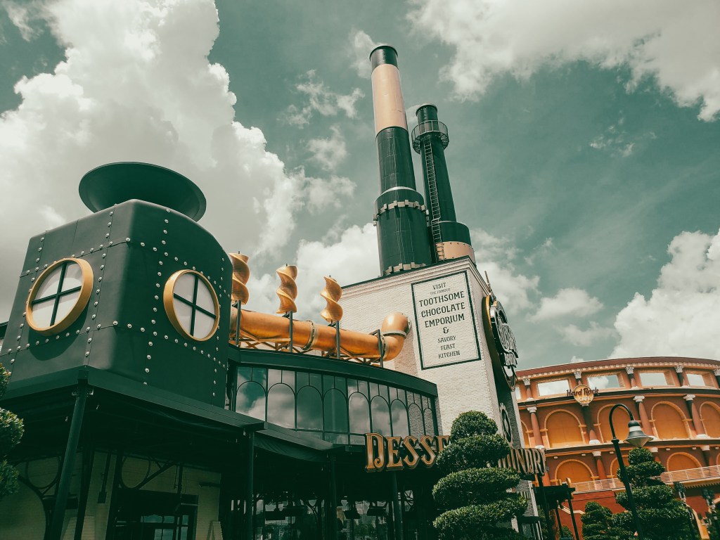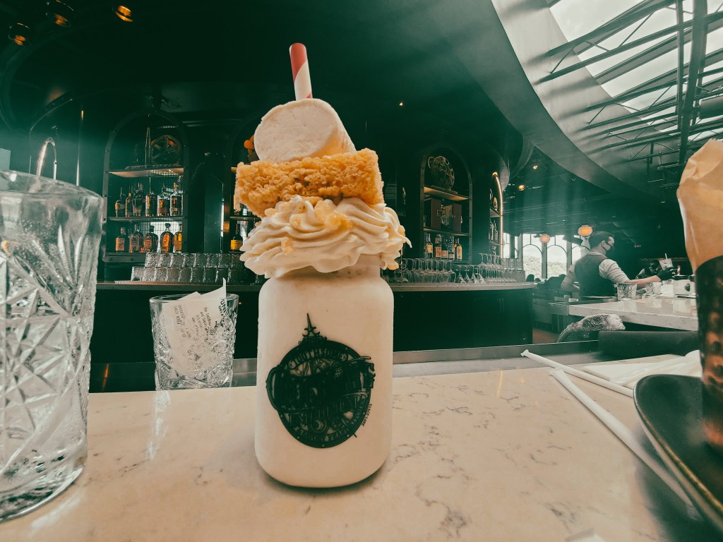 After some time at the pool we headed back to CityWalk. It was finally time to try Toothsome Chocolate Emporium & Savory Feast Kitchen. We walked in and checked in with the hostess to get a table. Well…. They had no tables available and were fully booked for the day. I never knew you could make reservations so that was a little bit of a bummer. However, she did say that we could go upstairs and sit at the bar. So that is what we did.