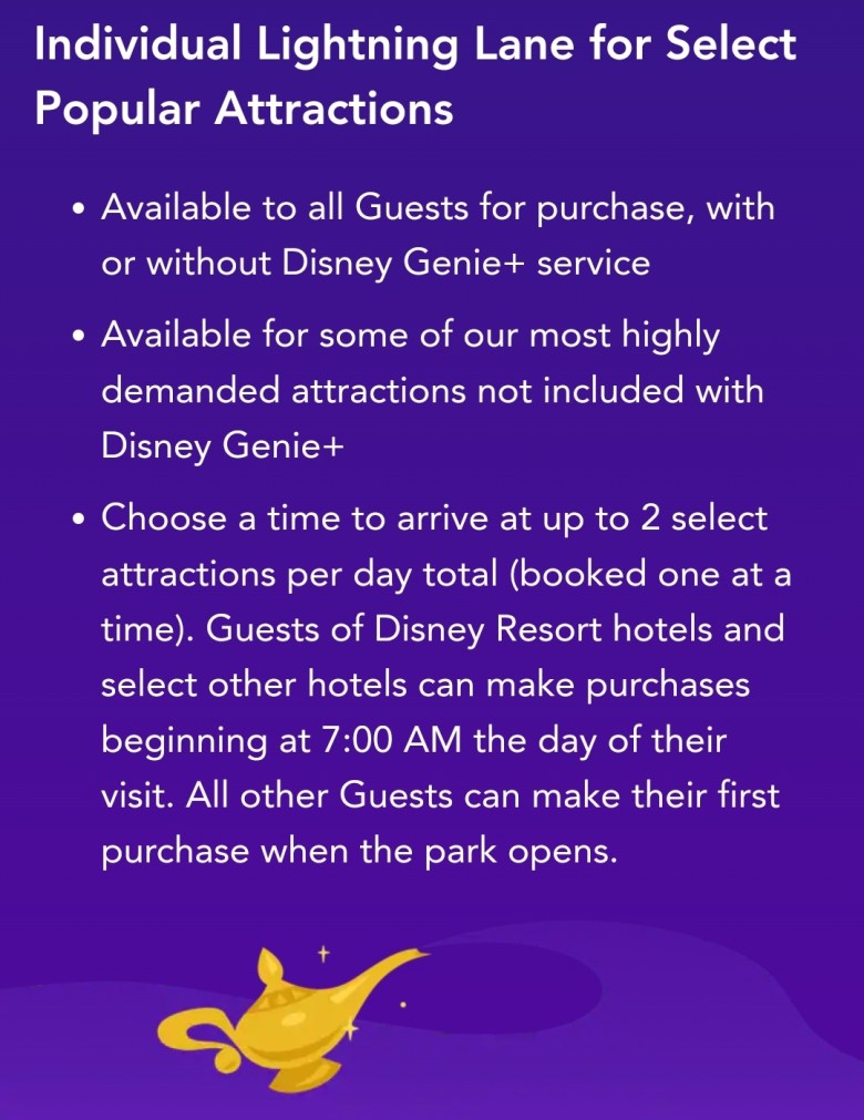 Another thing to note: You don’t need Disney Genie + to book individual Lightning Lane attractions. Disney will take your money without paying for the Disney Genie + service.