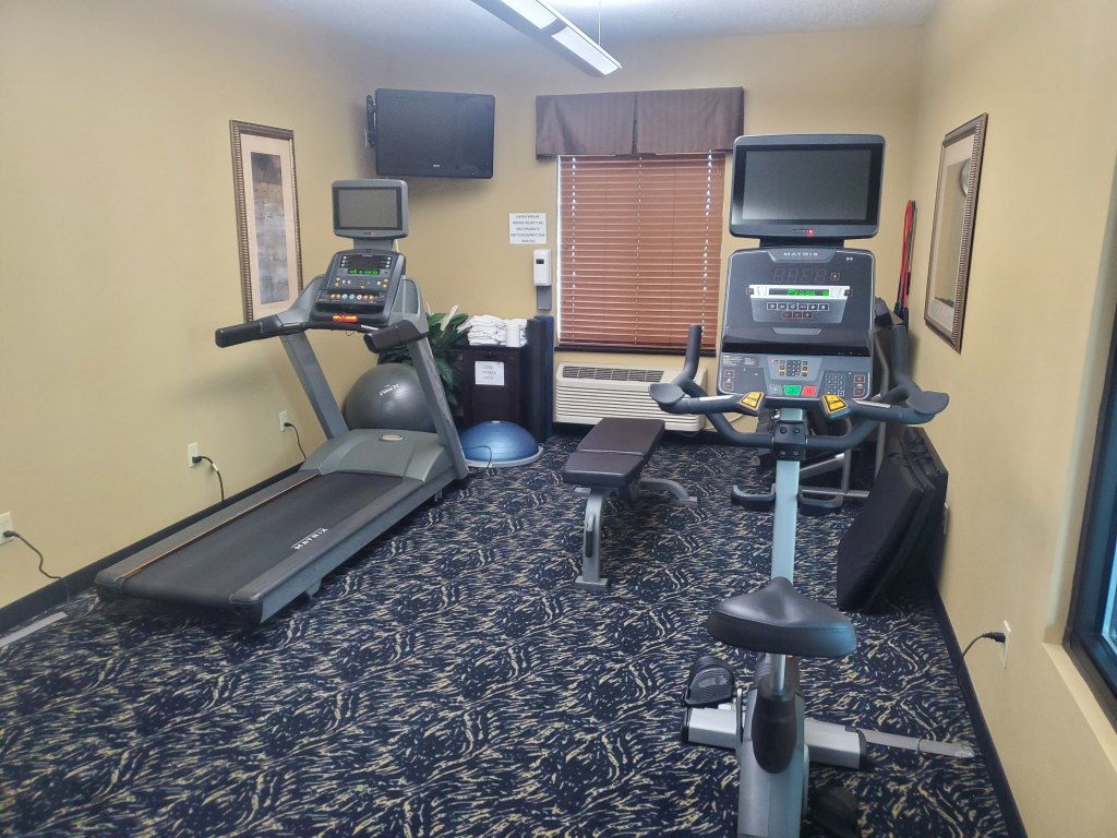 They have a treadmill and bike. You can also find an elliptical and free weights. While you will only find one of each. I never saw more than one person in there any of the times I checked it out.