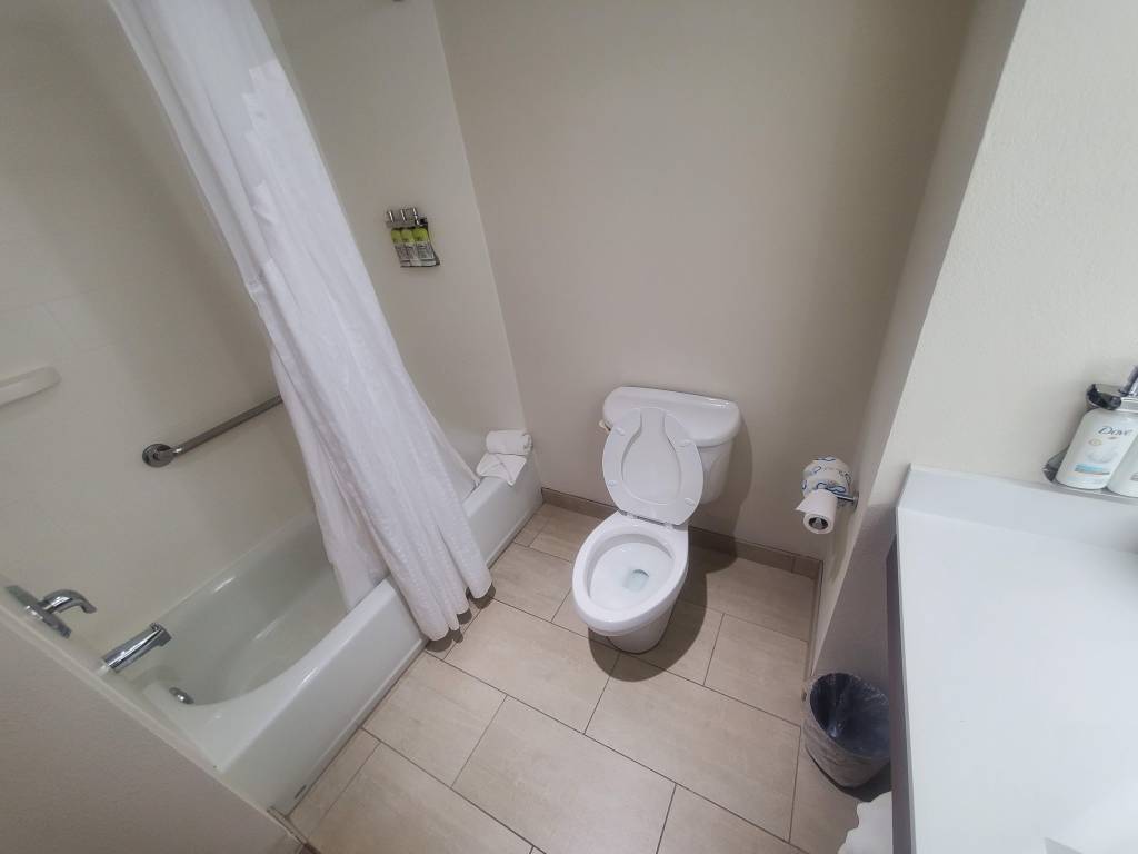 The toilet also wasn’t great when it comes to flushing power but it’s enough. I’ve stayed at places where the toilets struggled flushing paper. You don’t have that issue at the Holiday Inn Express Palm Bay but it won’t suck down a golf ball.