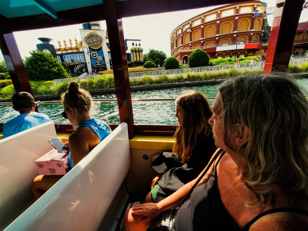 My daughter really wanted to ride the boat back to the hotel. Since she was being very good and we were on our feet all afternoon we went to grab the boat back to Sapphire Falls. We might have only waited five minutes before the boat came.