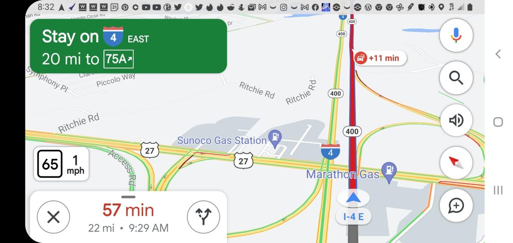 I-4 was a mess. Once we got on we hit a slow down about a mile into our trip on I-4. With every minute that passed the time kept increasing. Before you knew it we were not going to arrive at the hotel till around 0930.