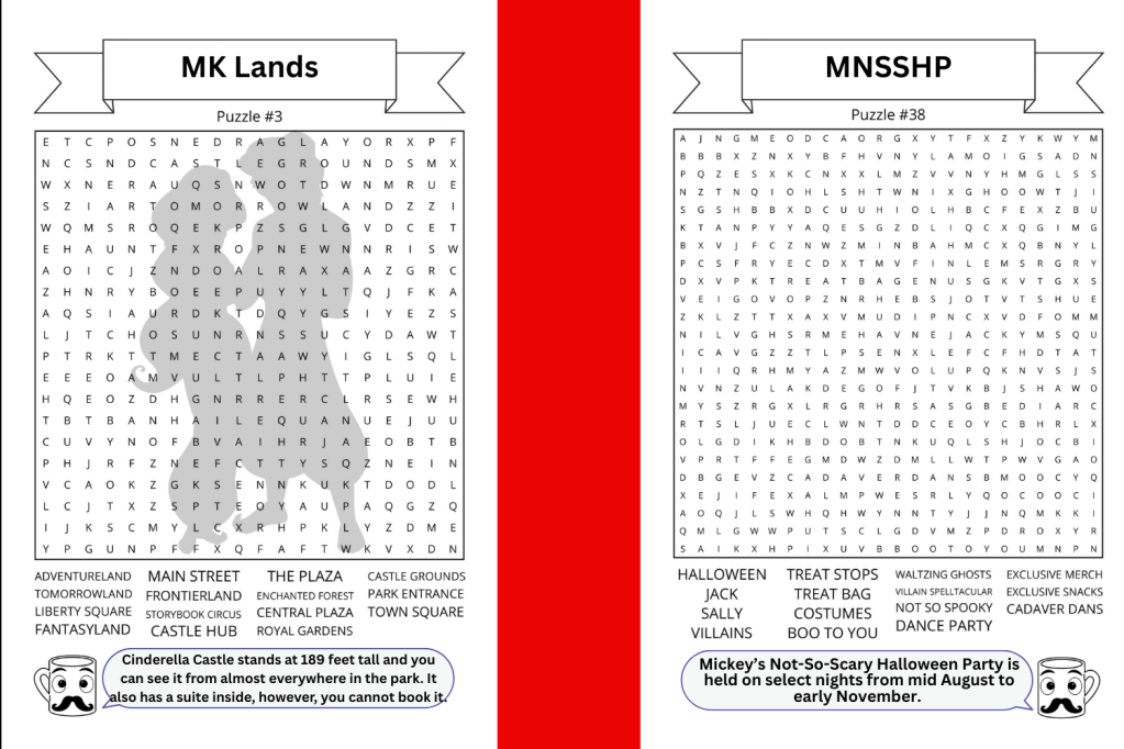 Each puzzle is inspired by a different ride, resort, show, land, or experience. From rope-dropping the mountains to catching the nighttime fireworks, these word lists are full of familiar magic and hidden gems — with 15 words in each puzzle to keep you guessing.