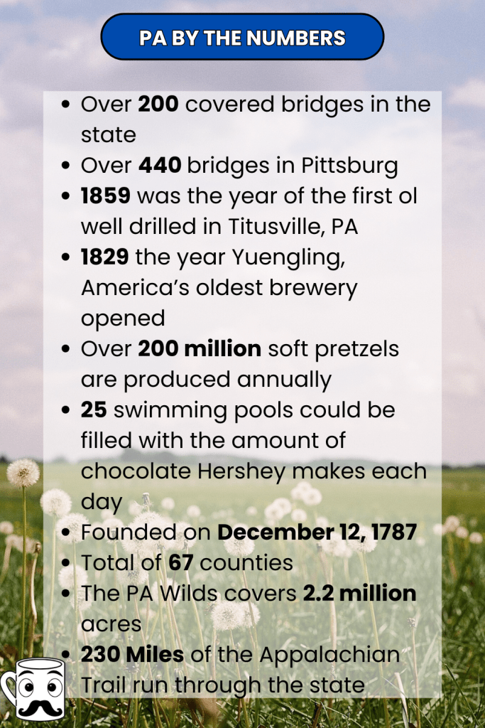 To truly get a sense of the state, the ebook offers a “bite-sized breakdown” of Pennsylvania, past and present. Did you know: